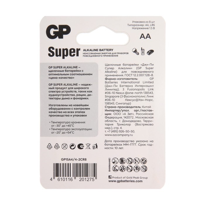 Батарейка алкалиновая GP Super, AA, LR6-8BL, 1.5В, 4+4 шт.