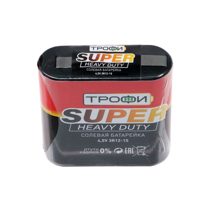 Батарейка солевая "Трофи" Super Heavy Duty, 3R12-1S, 4.5В, спайка, 1 шт.