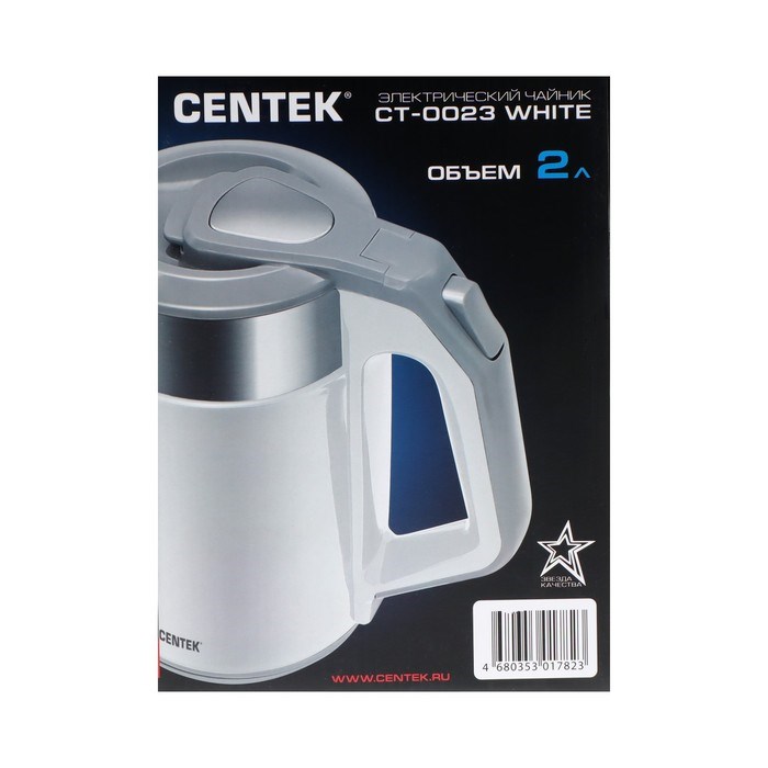 Чайник электрический Centek CT-0023, пластик, колба металл, 2 л, 2000 Вт, белый