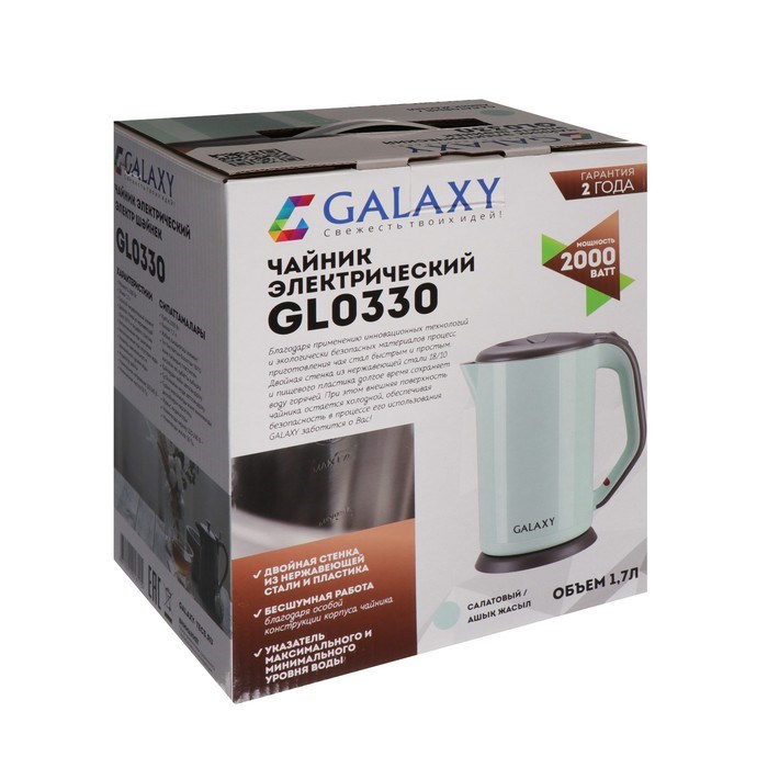 Чайник электрический Galaxy GL 0330, пластик, колба металл, 1.7 л, 2000 Вт, салатовый