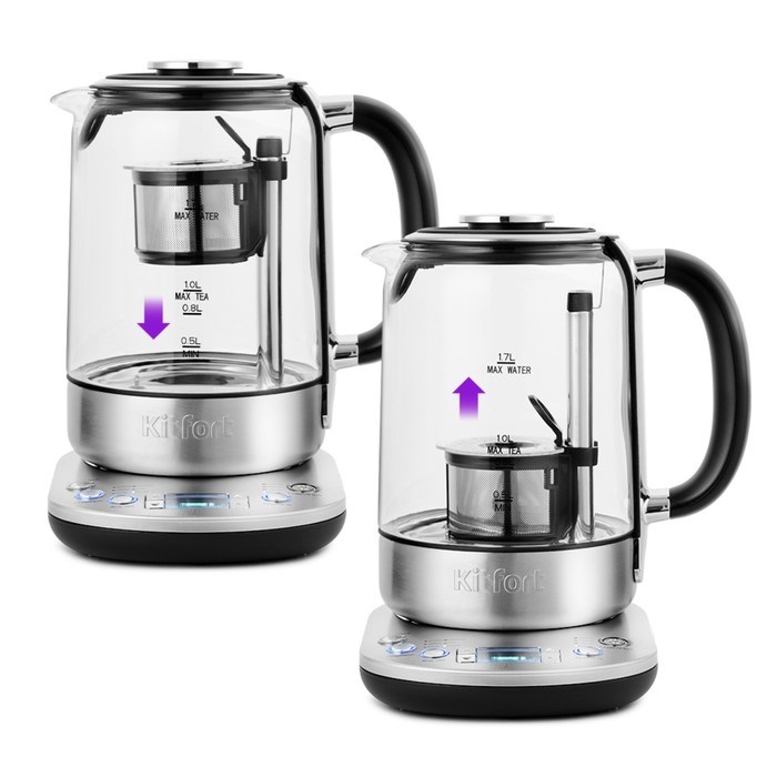 Чайник электрический Kitfort KT-6116, стекло, 1.7 л, 2200 Вт, подсветка, серебристый