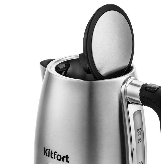 Чайник электрический Kitfort KT-684, металл, 1.7 л, 2200 Вт, автоотключение, серебристый