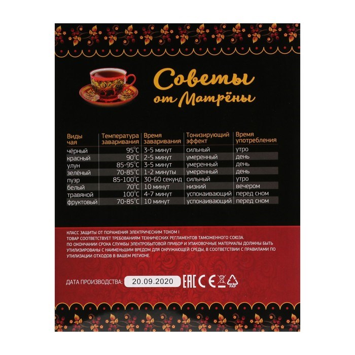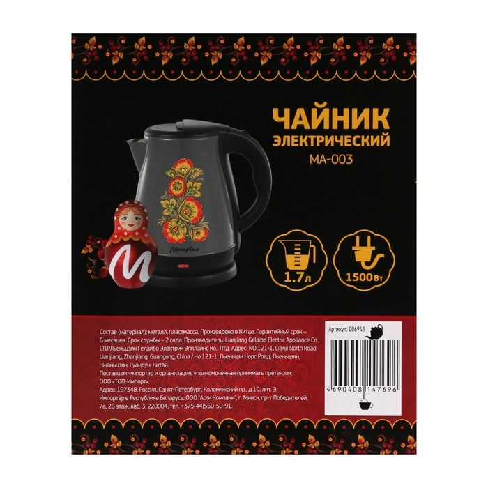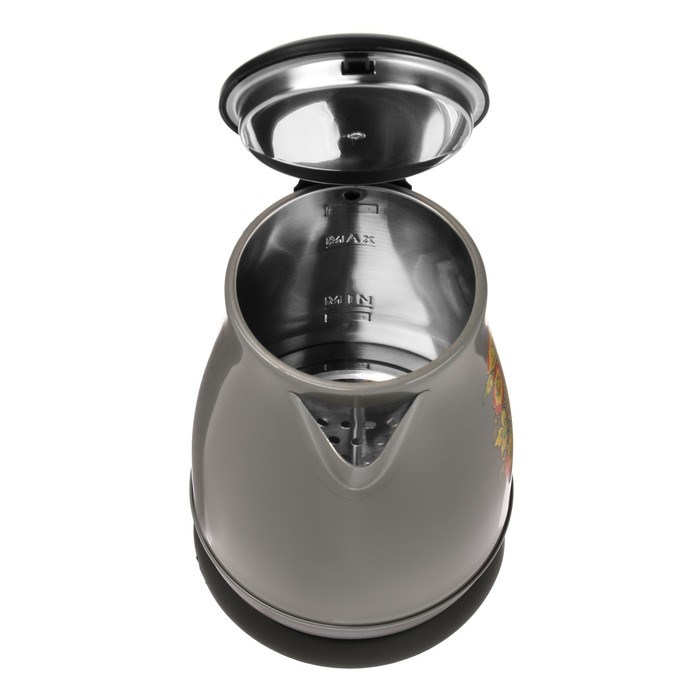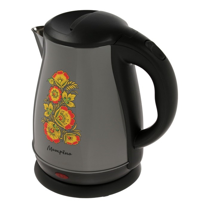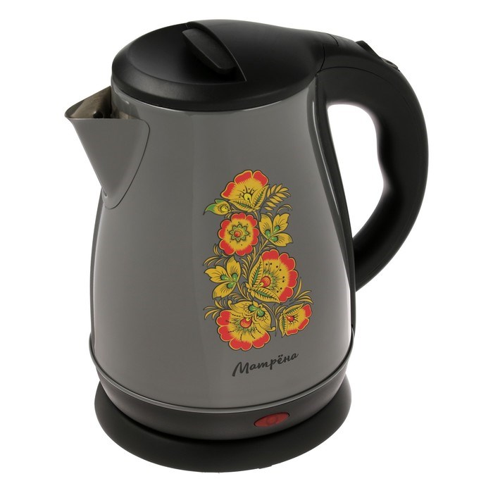 Чайник электрический "Матрёна" MA-003, металл, 1.7 л, 1500 Вт, серый с рисунком "Хохлома"