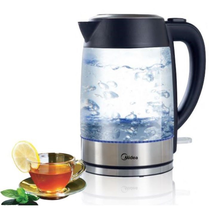 Чайник электрический Midea MK 8002, стекло, 1.7 л, 2200 Вт, подсветка, черный
