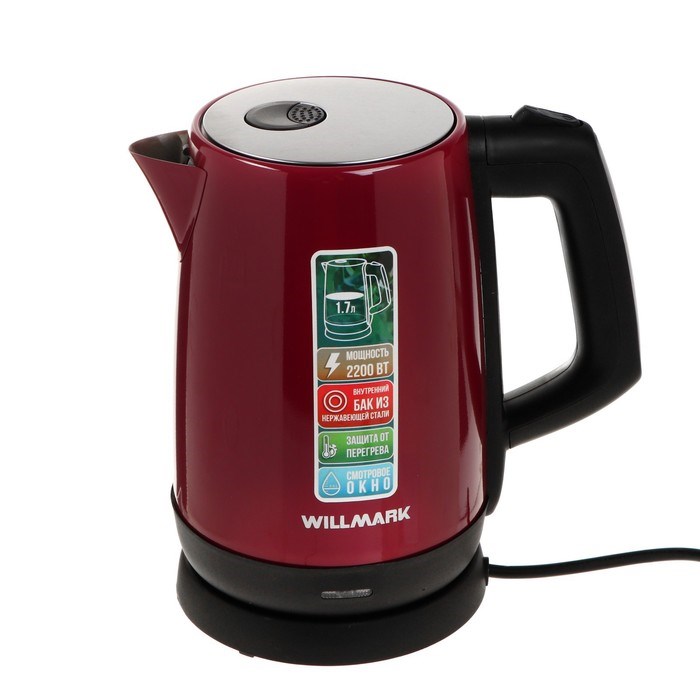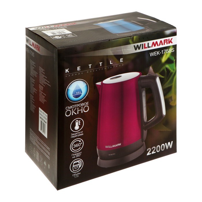 Чайник электрический WILLMARK WEK-1758S, нерж. сталь, 1.7 л, 2200 Вт, фиолетовый