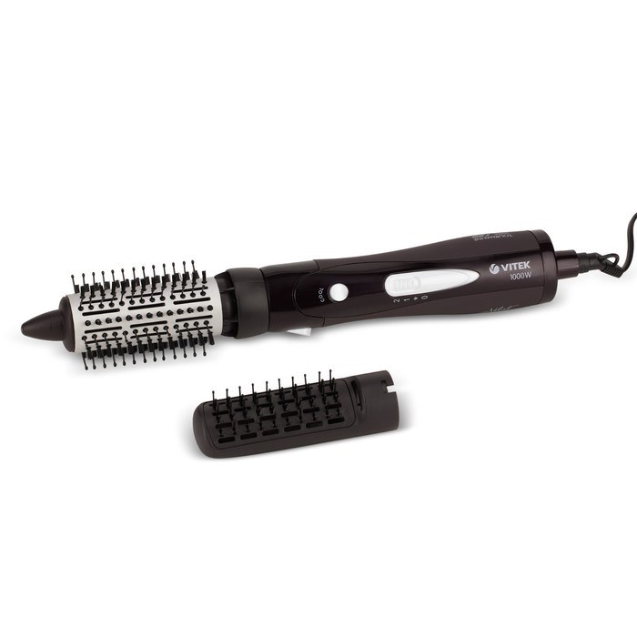 С феном-расчёской Vitek вы быстро высушите волосы и сделать объёмную укладку. Вы можете самостоятельно выбрать, насколько пышная будет причёска: в комплект входят две разные насадки. Вращающаяся конструкция делает прибор максимально комфортным для использования.