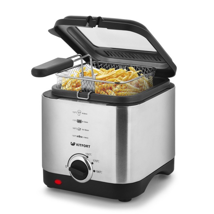 Фритюрница Kitfort КТ-2017, 900 Вт, 1.5 л, 3 режима, серебристая