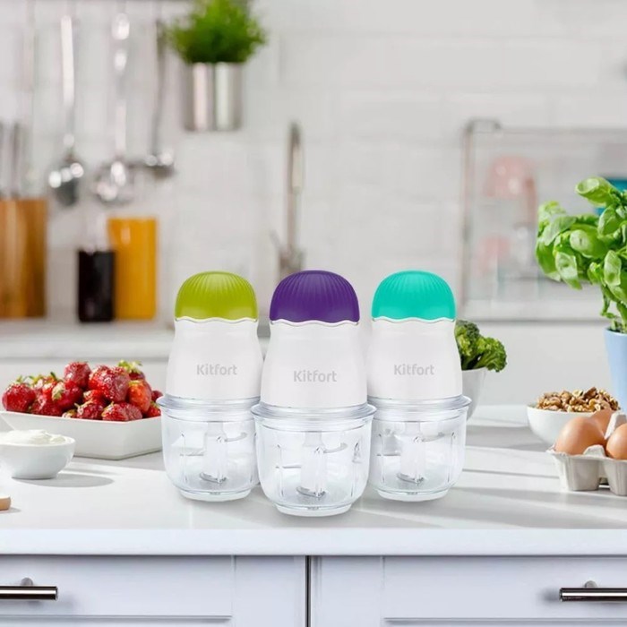 Измельчитель Kitfort КТ-3064-2, стекло, 150 Вт, 0.3 л, бело-салатовый