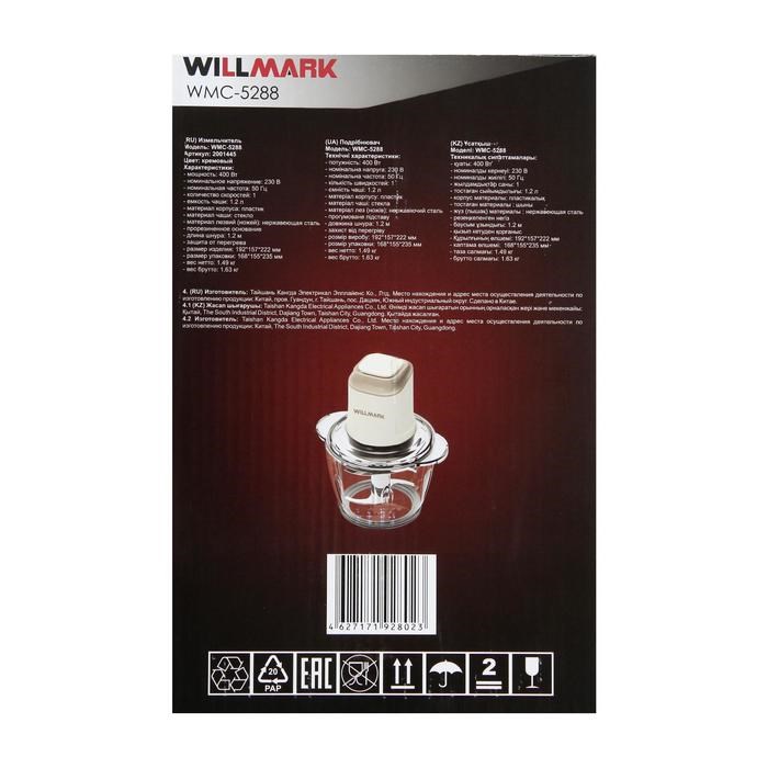 Измельчитель WILLMARK WMC-5288, стекло, 400 Вт, 1.2 л, стекло, цвет слоновая кость