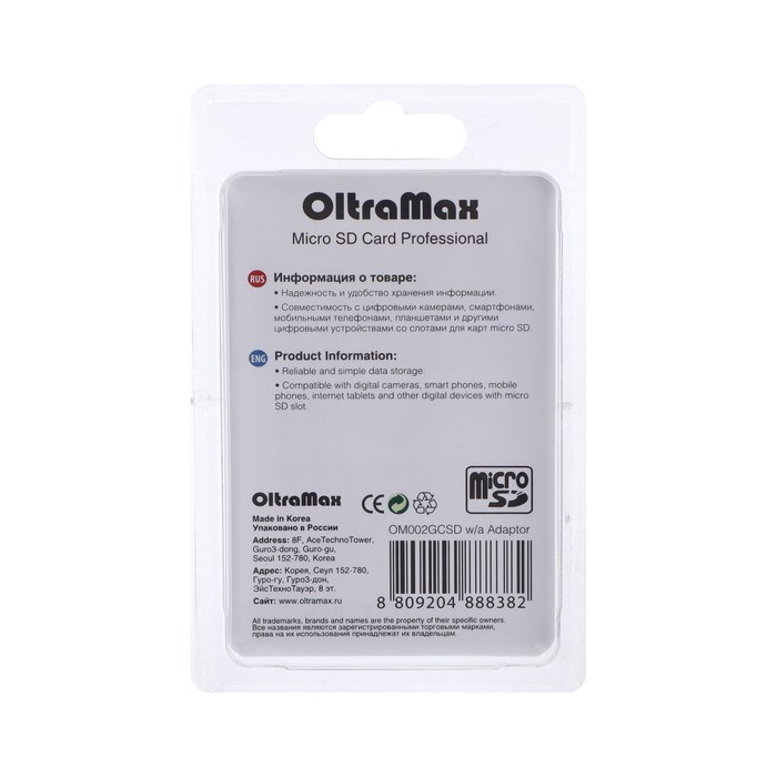 Карта памяти OltraMax MicroSD, 2 Гб, SDHC, класс 2