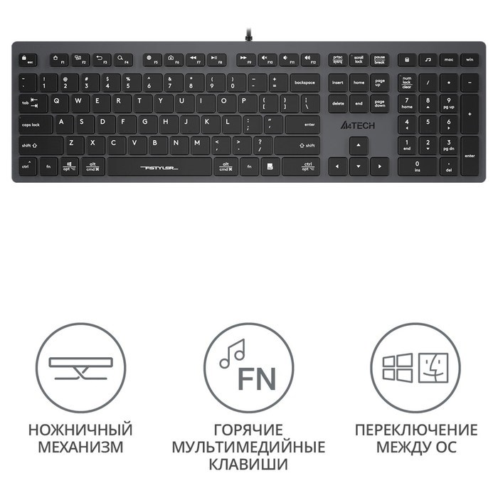 Клавиатура A4Tech Fstyler FX50 серый USB slim Multimedia (FX50 GREY)