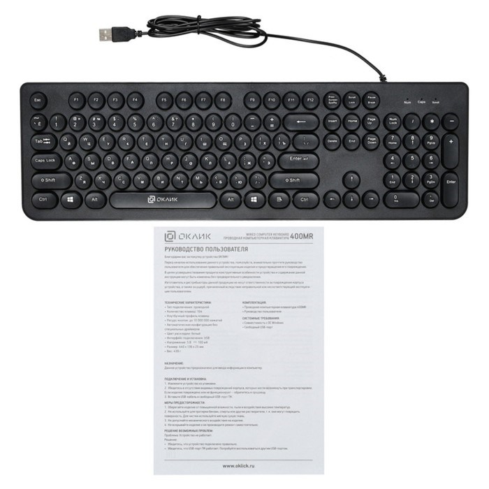 Клавиатура Оклик 400MR черный USB slim