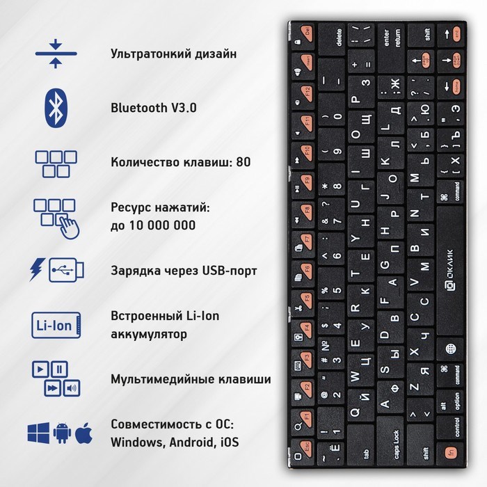 Клавиатура Оклик 840S черный USB беспроводная BT slim