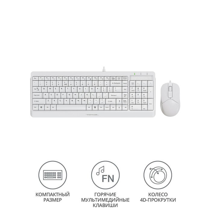Клавиатура + мышь A4Tech Fstyler F1512 клав:белый мышь:белый USB (F1512 WHITE)
