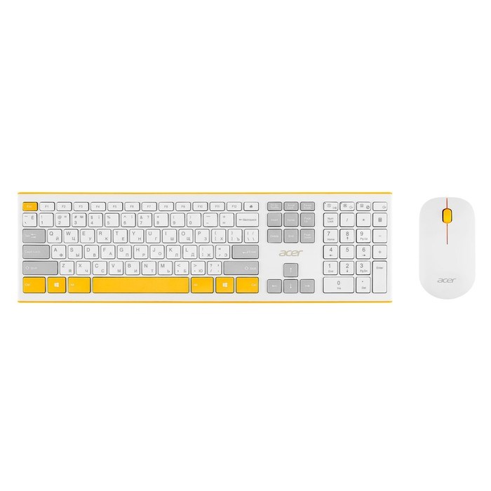 Клавиатура + мышь Acer OCC200 клав:желтый/белый мышь:белый/желтый USB беспроводная slim Mult 10046