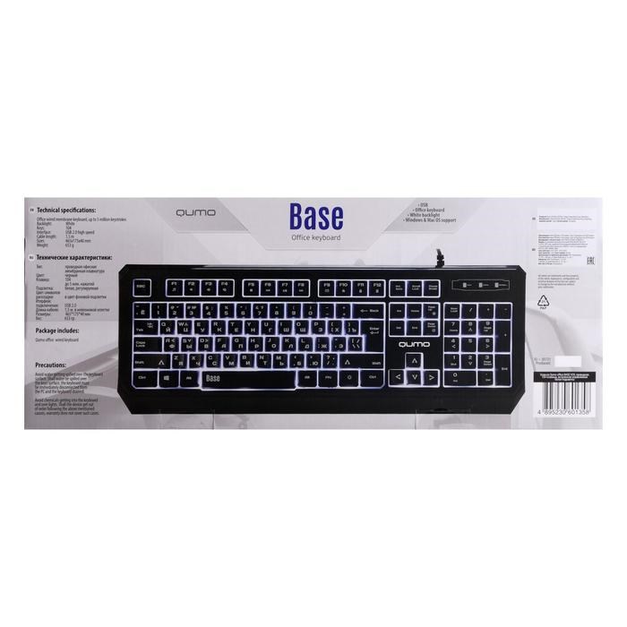 Клавиатура Qumo Base K59, проводная, мембранная, 104 клавиши, USB, подсветка, чёрная