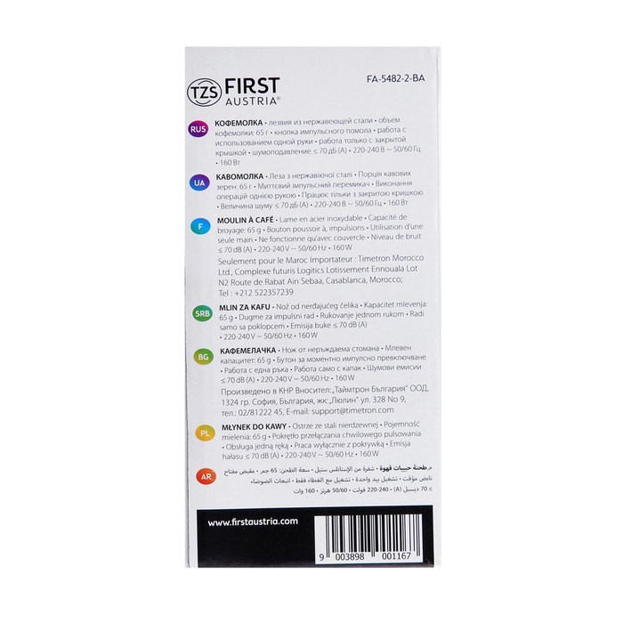 Кофемолка FIRST FA-5482-2-BA, электрическая, 160 Вт, 65 г, импульсный режим, чёрная
