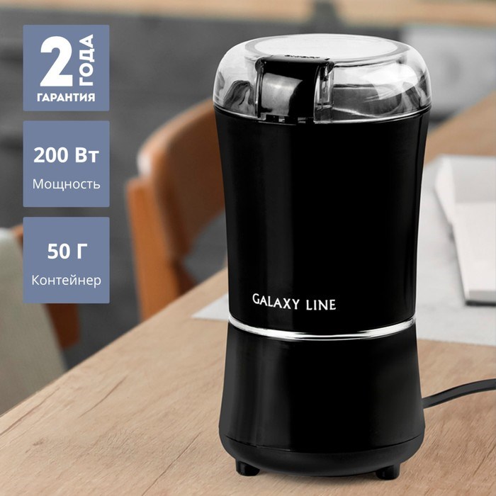 Кофемолка Galaxy GL 0907, электрическая, ножевая, 200 Вт, 50 г, чёрная