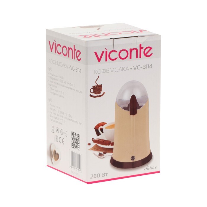 Кофемолка Viconte VC-3114, электрическая, ножевая, 280 Вт, 50 г, бежевая