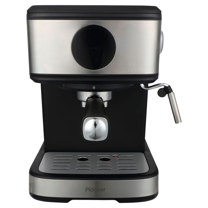 Кофеварка Pioneer CM121P, рожковая, 850 Вт, 1.5 л, чёрный с серебристым