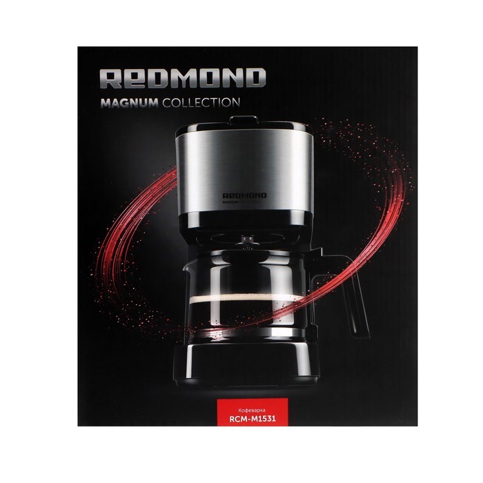 Кофеварка REDMOND RCM-M1531, капельная, 600 Вт, 0.6 л, чёрно-серебристая