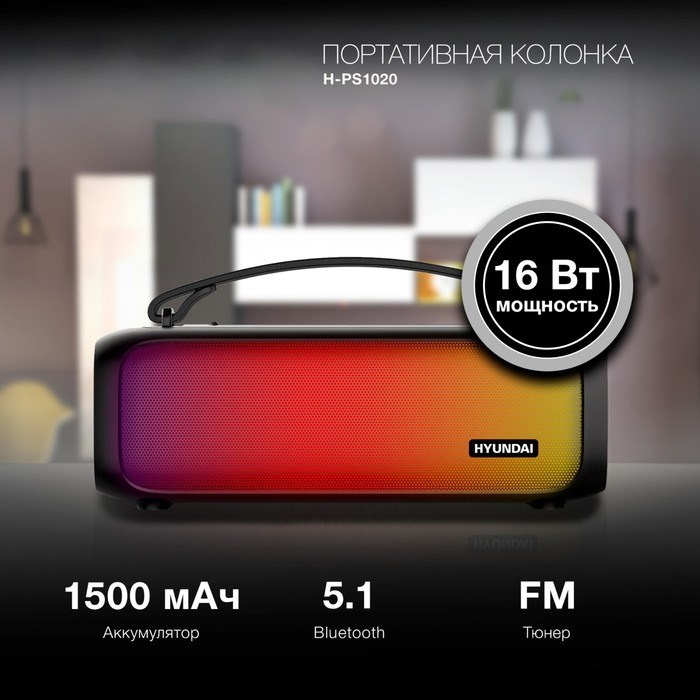 Колонка порт. Hyundai H-PS1020 черный 16W 2.0 BT 10м 1500mAh