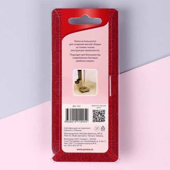 Лапка с адаптером предназначена для создания мягкой сборки на очень тонких и эластичных материалах. Используется для присбаривания края ткани и одновременно пришивания его к основному изделию.