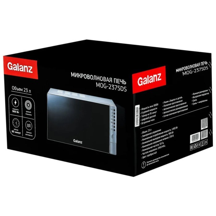 Микроволновая печь Galanz MOG-2375DS, 900 Вт, 23 л, серебристая