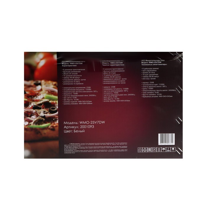 Микроволновая печь WILLMARK WMO-25V7DW, 700 Вт, 20 л, белая