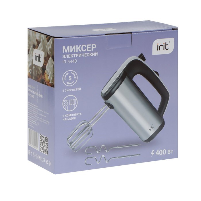 Миксер Irit IR-5440, ручной, 400 Вт, 2 насадки, 5 скоростей, чёрно-серебристый