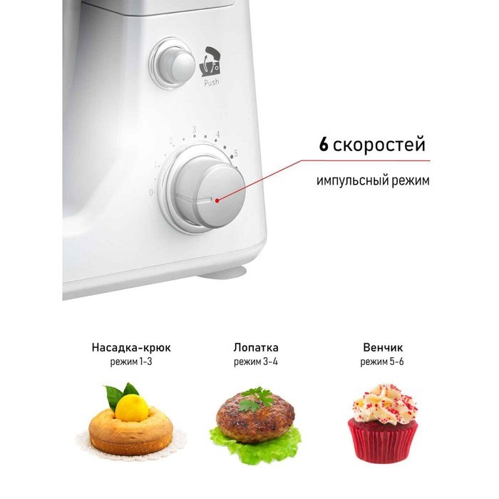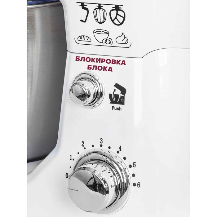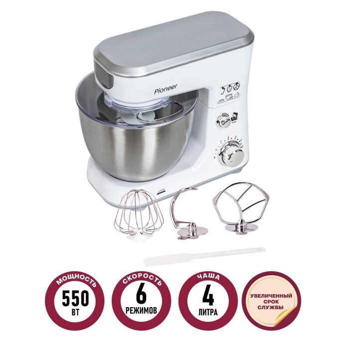 Миксер Pioneer MX326, планетарный, 550 Вт, 6 скоростей, 4 л, белый