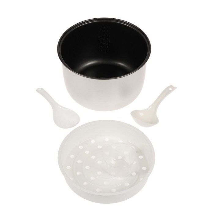 Комплектация: мерный стакан, ложка, поддон-пароварка.
