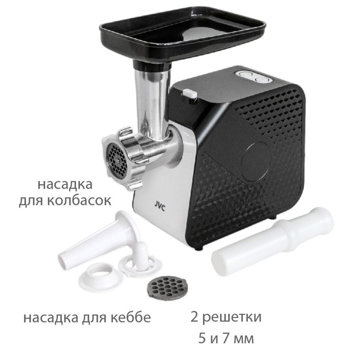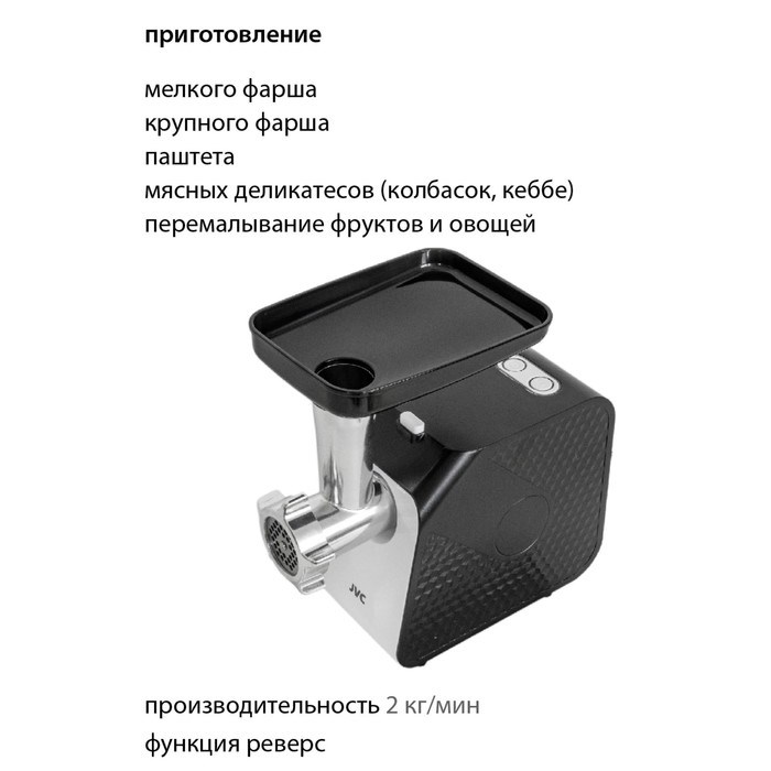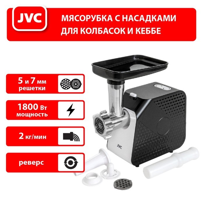 Мясорубка jvc JK-MG126, электрическая, 1800 Вт, реверс, 2 решётки, чёрная