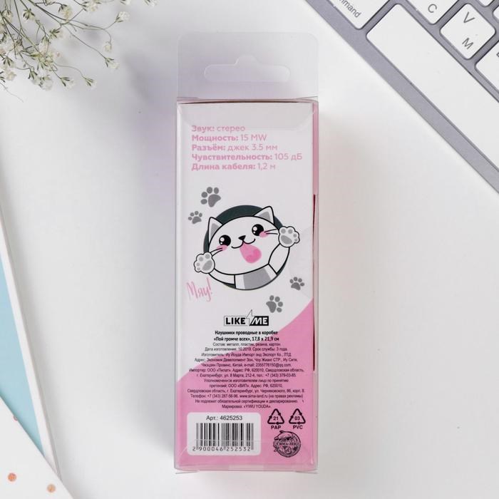 Наушники проводные в коробке, «Пой громче всех», вакуумные, белые