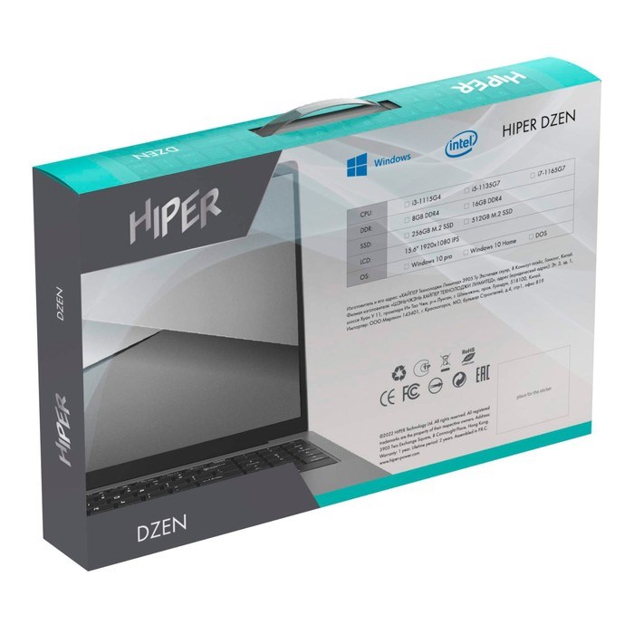 Ноутбук Hiper Dzen MTL1569 Core i7 1165G7 16Gb SSD512Gb NVIDIA GeForce MX450 2Gb 15.6" IPS F 10045