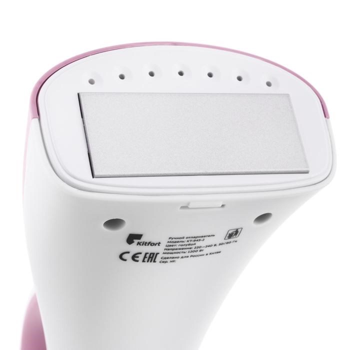 Отпариватель Kitfort КТ-943-1, ручной, 1200 Вт, 140 мл, 25 г/мин, шнур 1.65 м, бело-розовый
