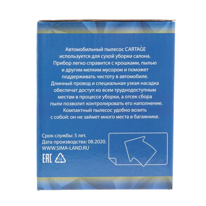 Пылесос автомобильный CARTAGE, беспроводной, 3 насадки, 120 Вт, 12 В, белый