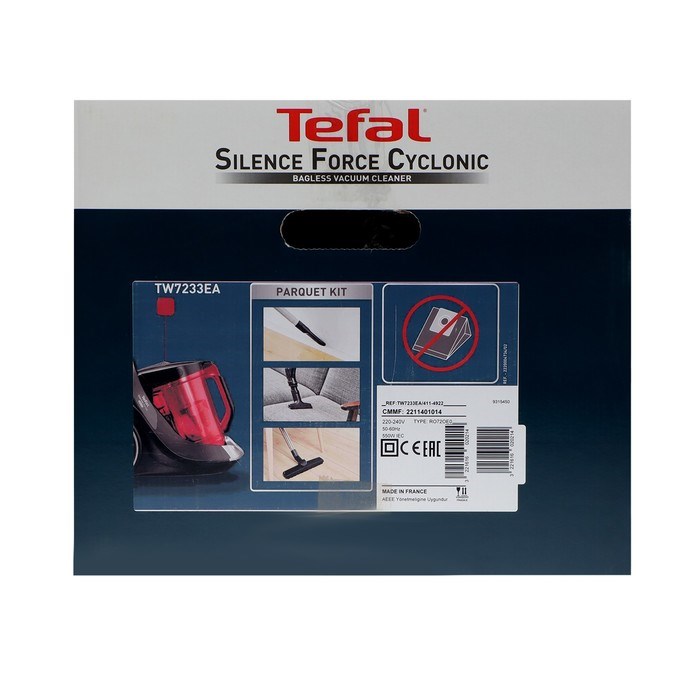 Пылесос Tefal TW7233EA, контейнер, 550 Вт, 2.5 л, чёрно-красный