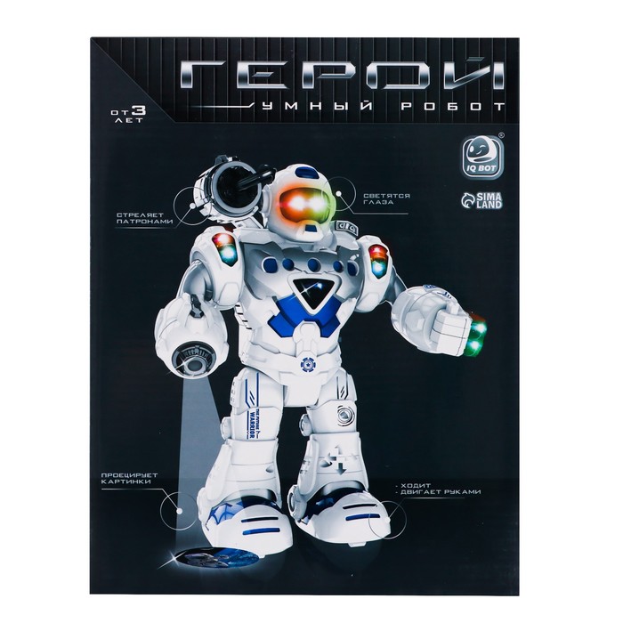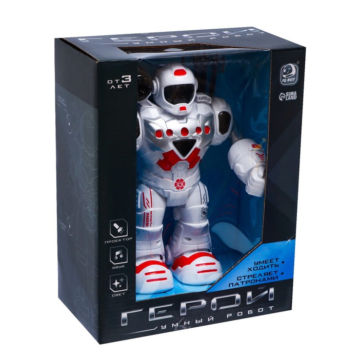 «Герой» — радиоуправляемый робот со встроенным проектором и способностью стрелять. Такая игрушка станет лучшим боевым другом ребёнка.