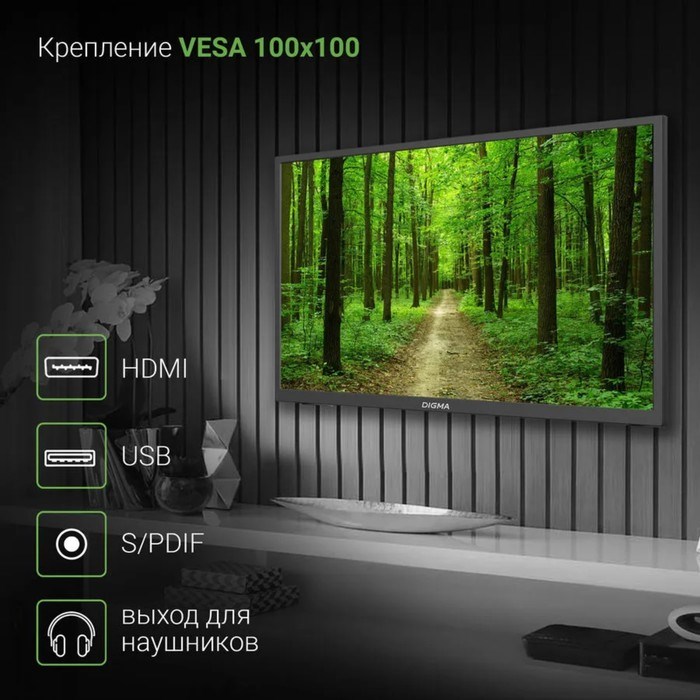 Телевизор Digma DM-LED24MBB21, 24", 1366x768, DVB-T/T2/C/S/S2, HDMI 3, USB 2
