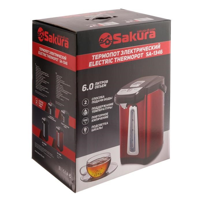 Термопот Sakura SA-1346BS, 6 л, 750 Вт, 2 способа подачи воды, чёрный