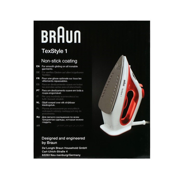 Утюг Braun SI1019RD, 1900 Вт, керамическая подошва, 25 г/мин, 220 мл, бело-красный