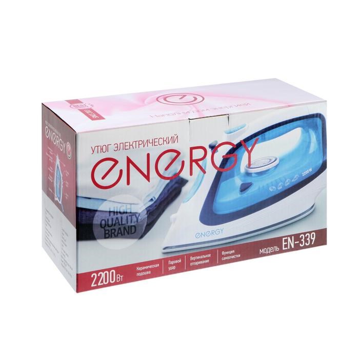 Утюг ENERGY EN-339, 2200 Вт, керамическая подошва, 350 мл, бело-голубой