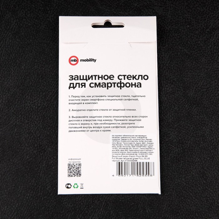 Защитное стекло mObility, для Xiaomi Poco M4 5G, полный клей, чёрное