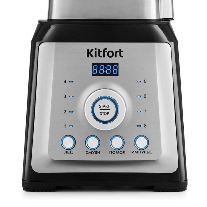 Блендер Kitfort KT-1399, стационарный, 2000 Вт, 2 л, 8 скоростей, серебристый