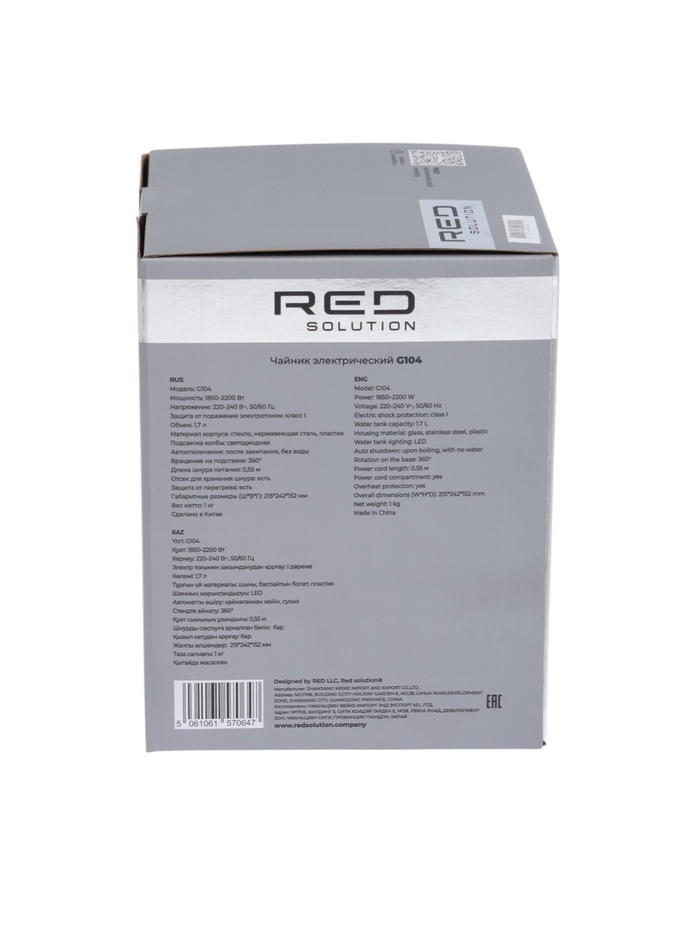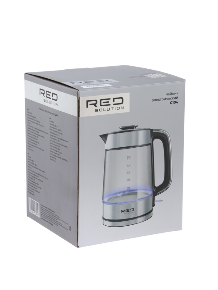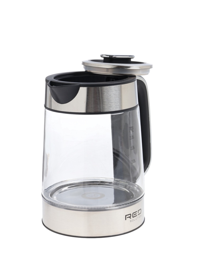 Чайник электрический RED SOLUTION G104, 1.7 л, 2200 Вт, стекло, съёмная крышка, серый