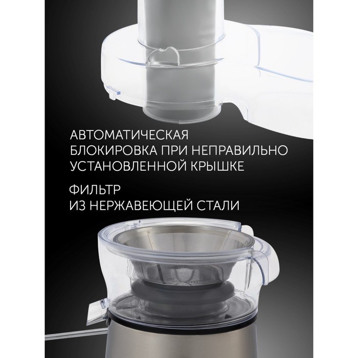 Соковыжималка Polaris PEA 1142A, центробежная, 1100 Вт, 0.5/1.4 л, 21000 об/мин, серебристая