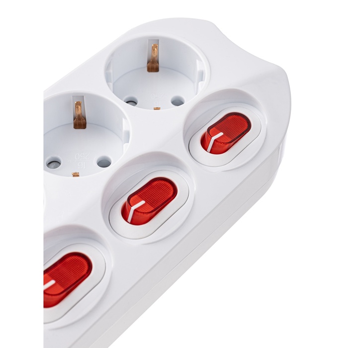 Удлинитель СТАРТ, 3 розетки, 1.5 м, 16 А, ПВС 3×1 мм2, с заземлением, индивидуальные кнопки включения, IP20, белый